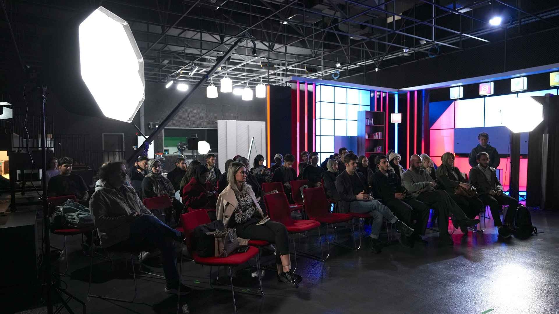 İbn Haldun Üniversitesi İletişim Fakültesi tarafından TRT tabii iş birliğiyle düzenlenen "Fikirden Ekrana: Dijital Platformlarda Hikâye Üretimi, Prodüksiyon ve Pazarlama" Seminer Serisi kapsamındaki ilk oturum, 18 Kasım’da Medya Merkezi Shreen Abu Akleeh Stüdyosu'nda öğrencilerimizin geniş katılımıyla gerçekleştirildi. Dijital yayıncılık ekosistemine dair kapsamlı bir perspektif sunan ilk oturumda, TRT tabii Strateji ve Planlama Müdürü Furkan Kınık ile Ürün Yönetimi Lideri Özer Öcek katılımcılara hem sektörel hem teknik açıdan zengin içerikler sundu.